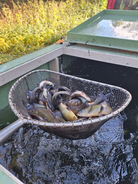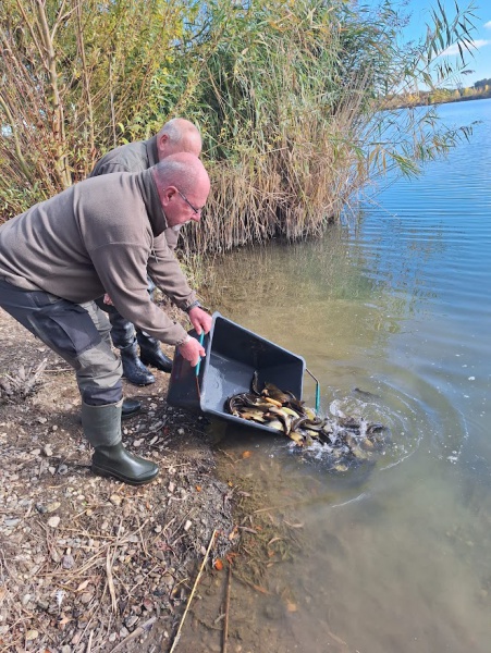 18.10.2025Dnes v sobotu 18. října došlo k zarybnění dvou rybářských revírů na kterých hospodaříme. Blatecký mlýn 1A a Poděbrady 1A. Díky velice rychlé a profesionální komunikaci s rybářským technikem ÚS Ostrava Jakubem Vávrou byl dodán od MO Přerov pro tyto revíry velice atraktivní candát obecný ve stáří Ca2. Blatecký mlýn 1A osazen celkem 63 kg/ 420 ks. Poděbrady 1A osazeny 50 kg/ 333 ks. Geby budou ještě candátem dorybněny! Průměrná hmotnost jedince 0,15 kg. Suma sumárum: 113 kg/ 753 ks. Cena za 1 kg násady 400,-Kč. Celkem 45.200,-Kč za násadu candáta. Krásná práce!