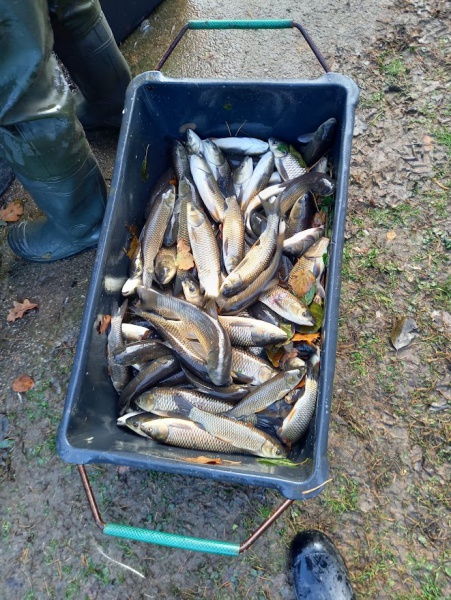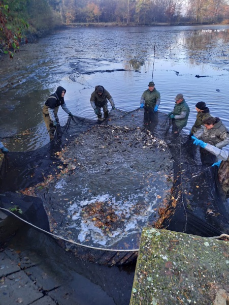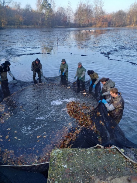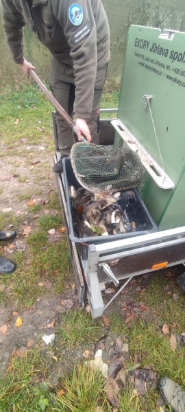 Výlov RZ Podhrad, rozvoz násady amura bílého do revírů MO dne 8.11.2025