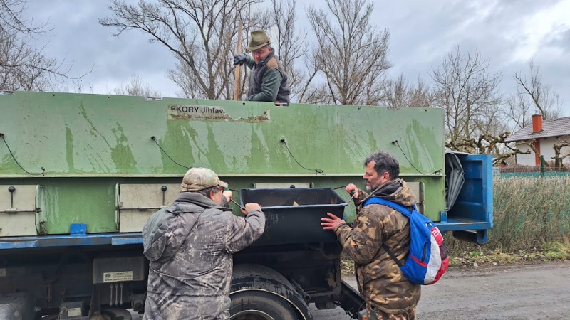 Výlov RZ Podhrad, rozvoz násady amura bílého do revírů MO dne 8.11.2025